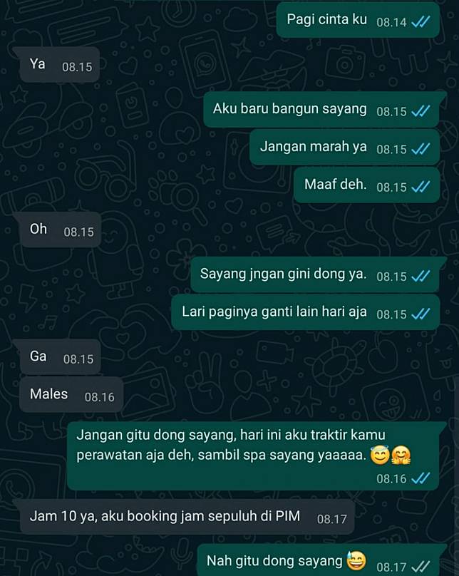 Manfaatkan lah fitur itu kirimkan saja emoji yang imut untuk bisa merayunya agar tidak marah lagi. Ini 10 Cara Membuat Pacar Tidak Marah Lagi. Walaupun pacar kamu terus saja mengabaikan pesan chatting yang kamu kirimkan maka kamu teruslah berusaha agar nantinya dia pun tidak akan marah lagi.