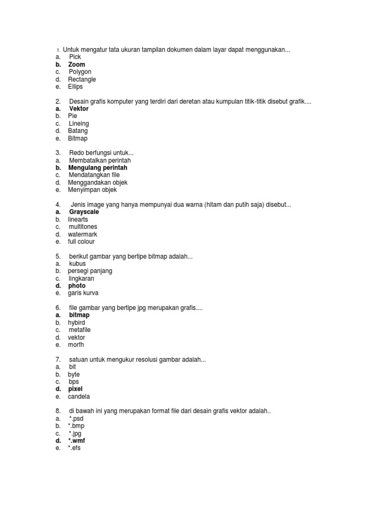 Tipe file gambar grafis bitmap yang juga digunakan pada gambar desain grafis vektor adalah. LATIHAN SOAL CorelDRAW I. Salah satu kelemahan dari desain grafis vektor adalah.